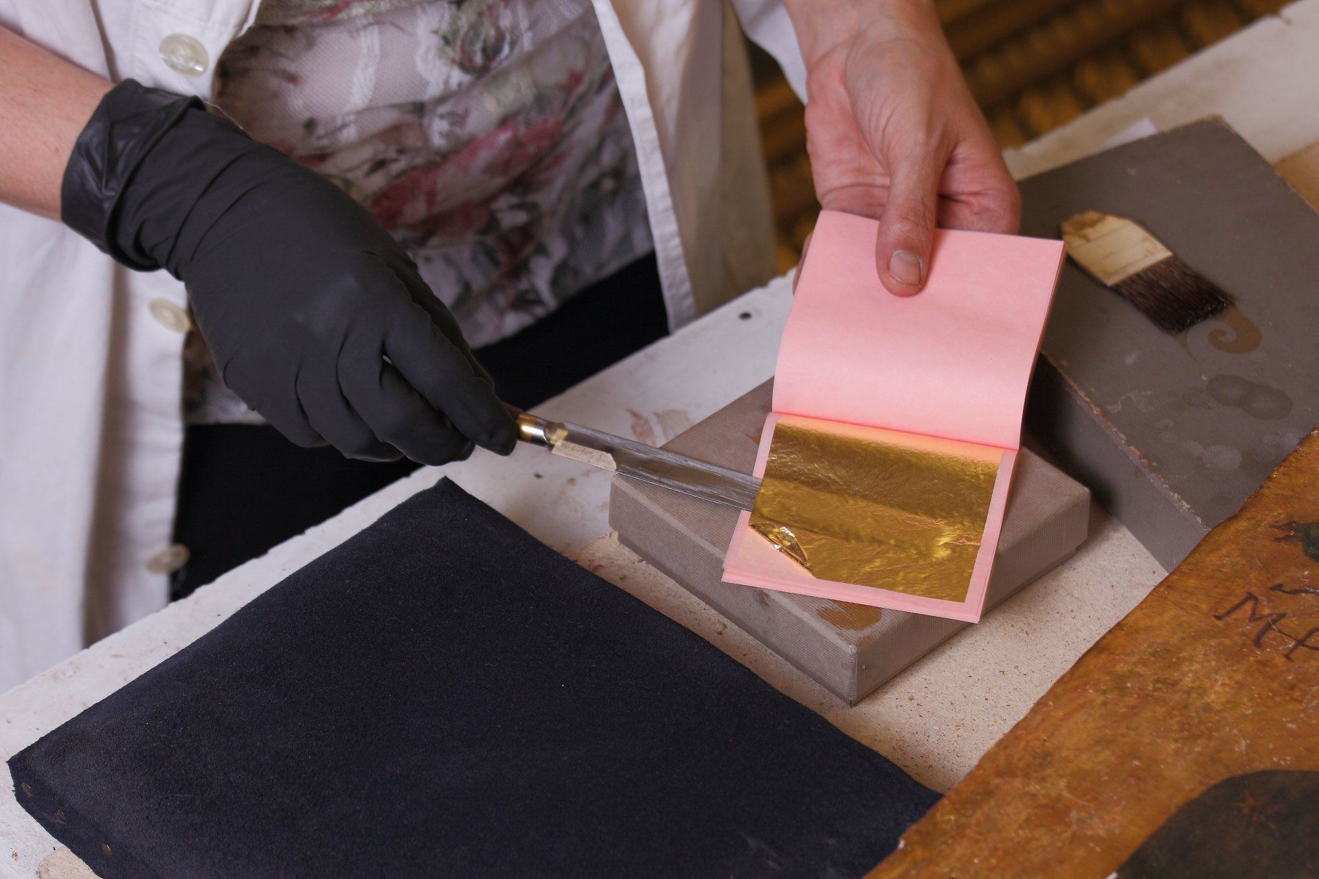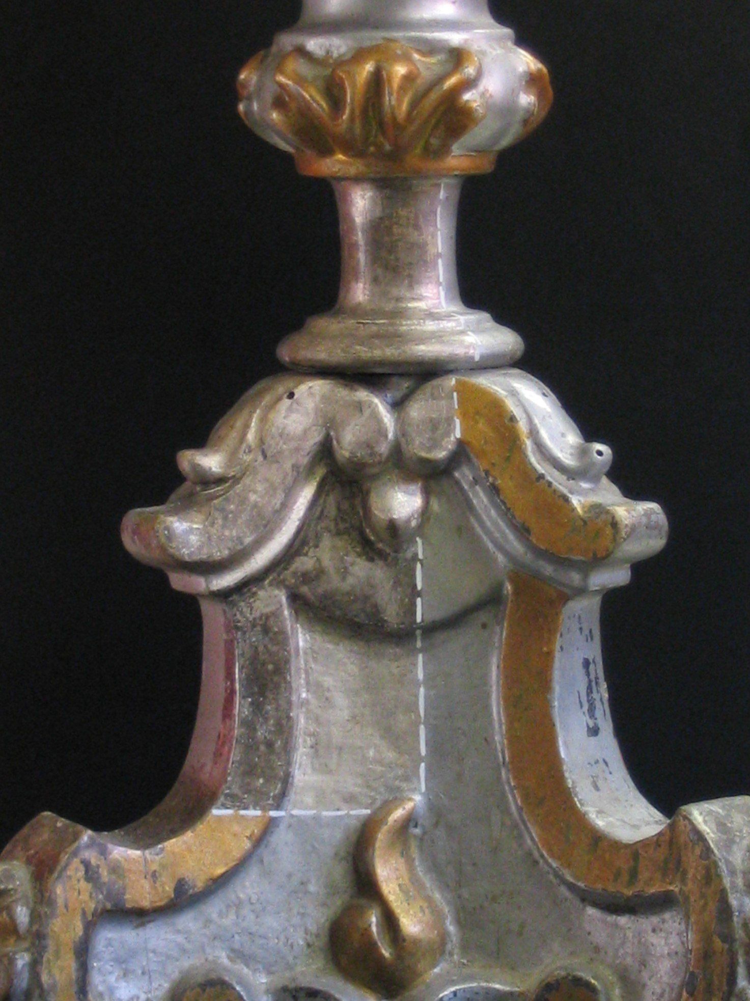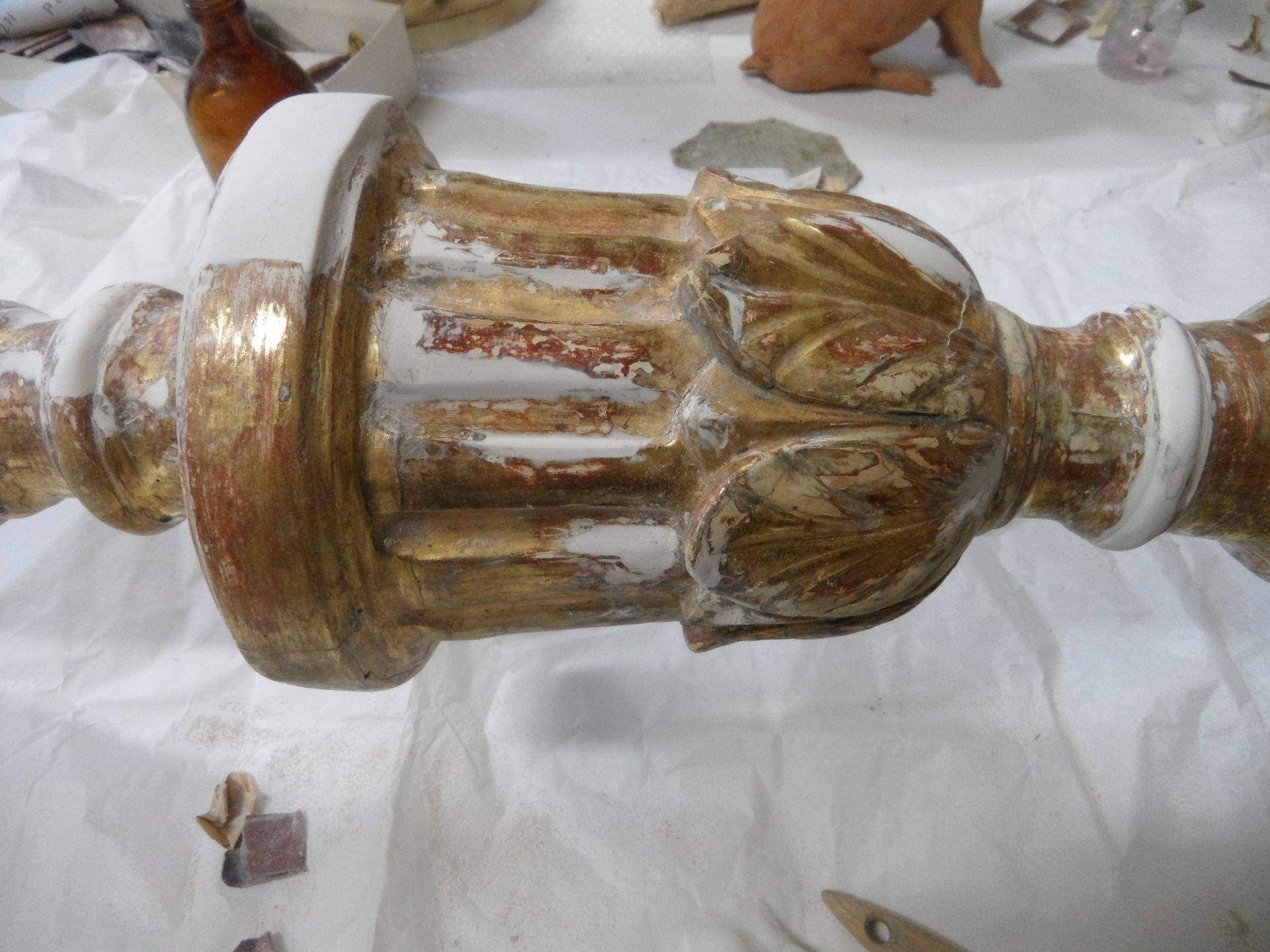rimozione ridipinture, ricostruzioni di mancanze, doratura a foglia oro e laccatura.